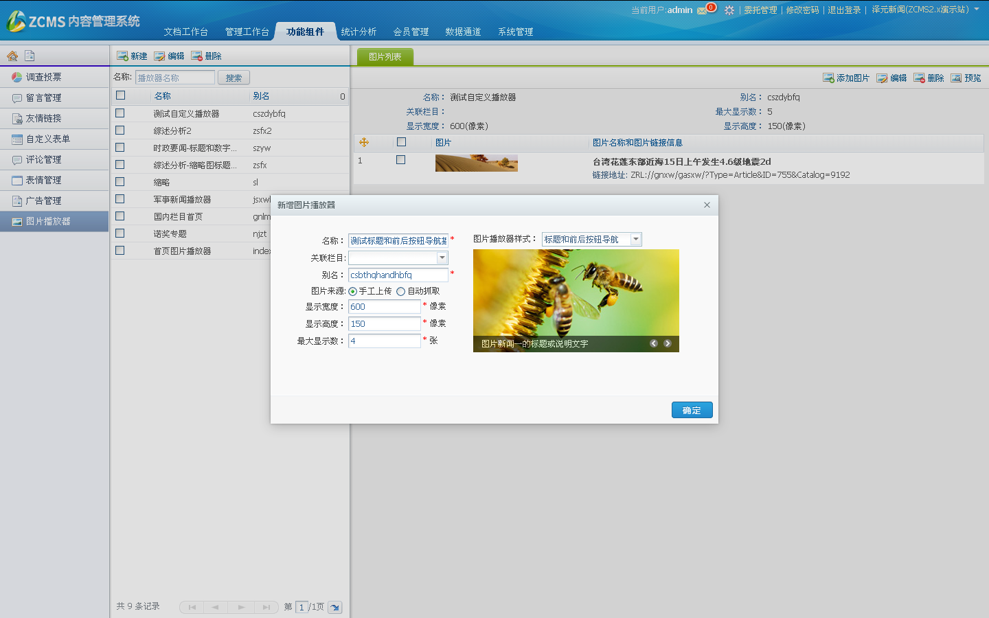 //有按钮的播放器模板代码示例: <div class="changeBox_style${PlayerID}" id="change_${PlayerID}"> 区域用于获取添加到播放器的图片信息 --> <playerImgArea> <div class="changeDiv"> <h3><a href="${URL}" target="_blank">${Alt}</a></h3> <a href="${URL}" target="_blank"><img src="${ImgSrc}" width="${Width}" height="${Height}" /></a> </div> </playerImgArea> <a href="#;" class="a_last" title="上一个">上一个</a><a href="#;" class="a_next" title="下一个">下一个</a> </div> |