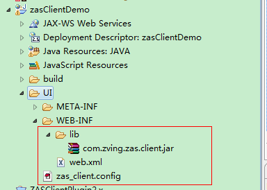 根据下图将zas_client.config放在相应应用下目录中并在web.xml进行配置。
