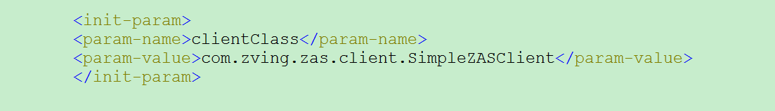 配置client类,默认使用com.zving.zas.client.SimpleZASClient 应用可根据需求重新实现该类,(具体参考下面文档ZASClient的实现)。