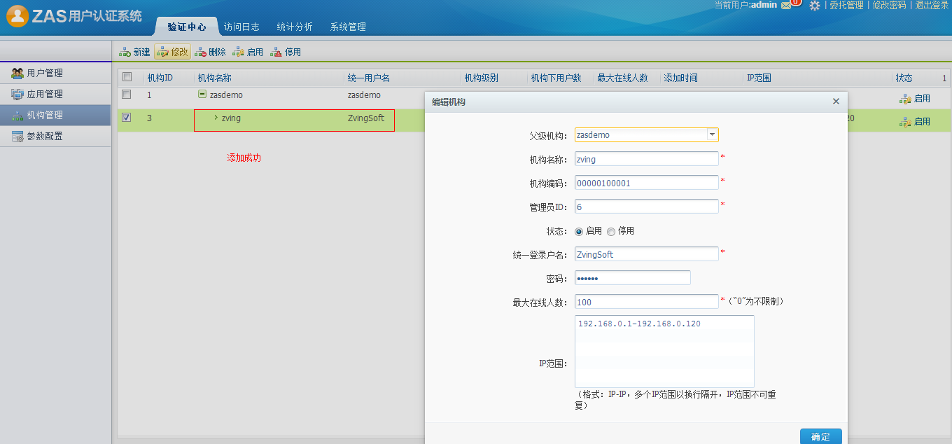ZAS为用户提供个人用户登录,ip登录等多种登录方式。个人用户登录是用户注册账号进行登录,ip登录是,系统管理员在ZAS中新建机构,通过管理该机构的并发数,ip范围,使得在该ip范围内的用户可以直接通过ip进行登录,并访问应用。此外还有机构账号登录和社会化登录。