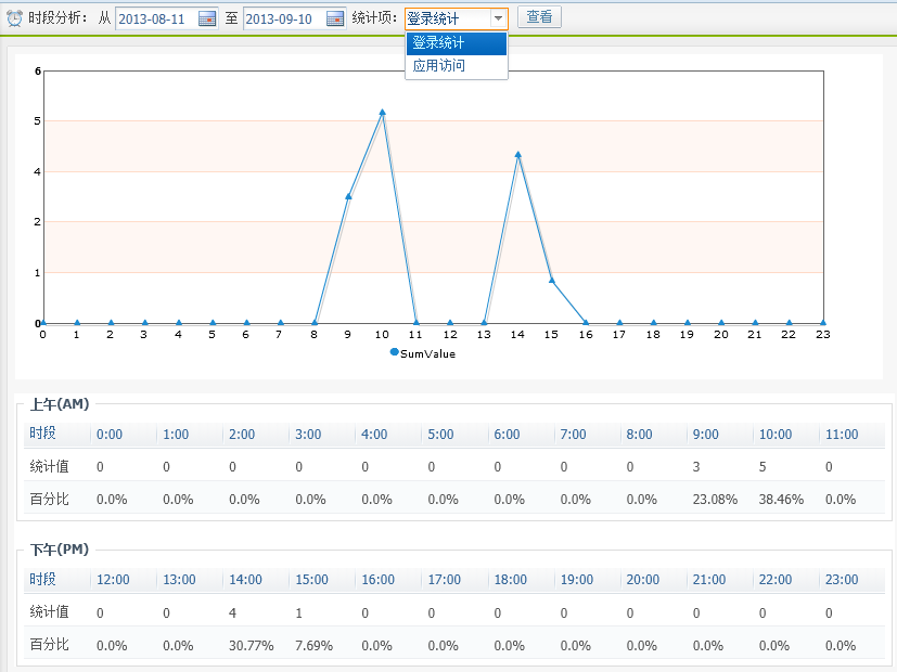 统计一天中不同时段访问情况的曲线图与统计列表。