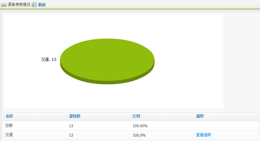 统计用户使用不同语言访问本网站的饼图与统计列表。