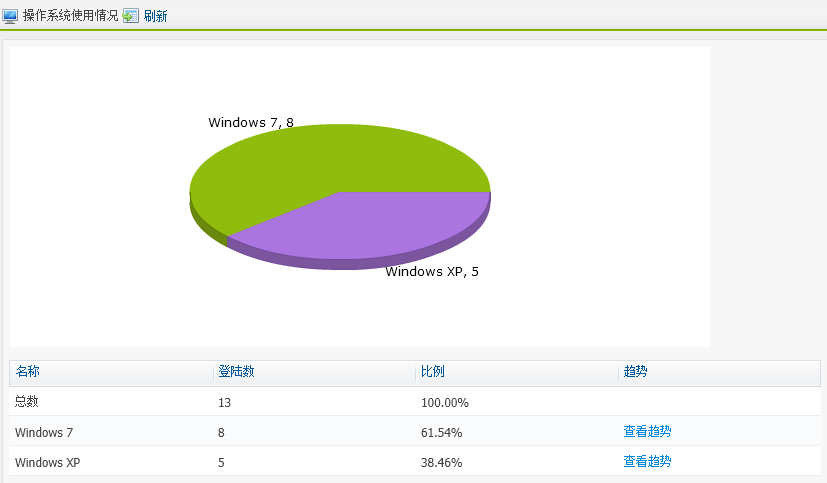 统计用户使用不同操作系统访问本网站的饼图与统计列表。