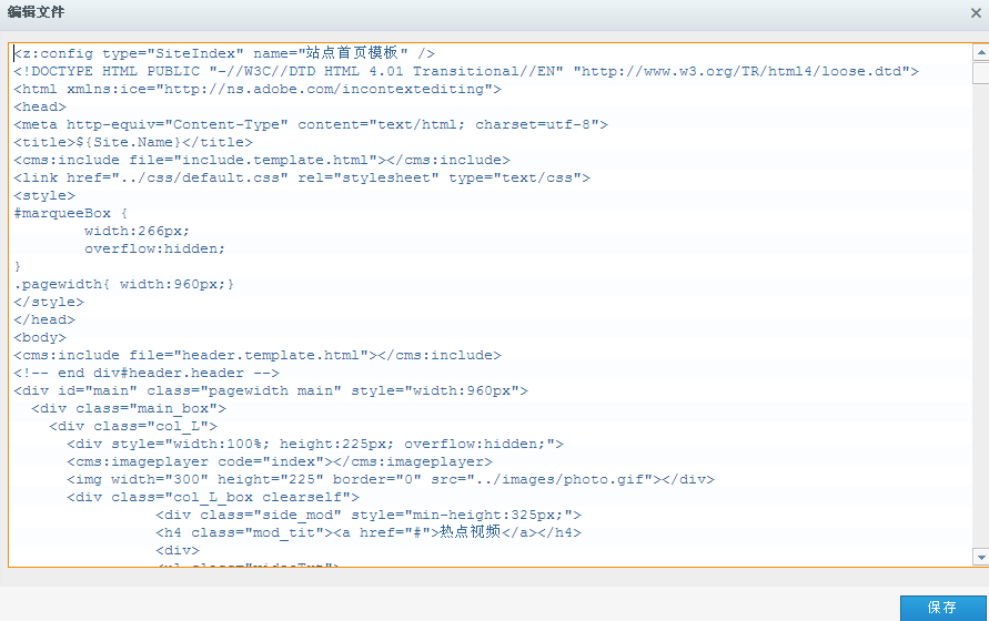 在此对话框中编辑修改模板文件,点击“保存”按钮,修改生效。