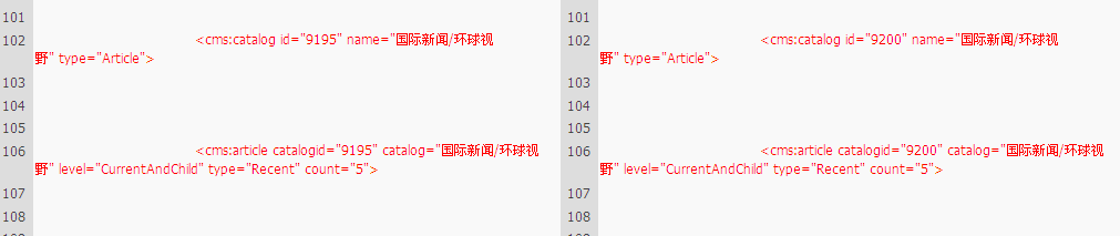 此时可以点击“只显示差异行”按钮,页面上只显示两个历史版本的差异行。