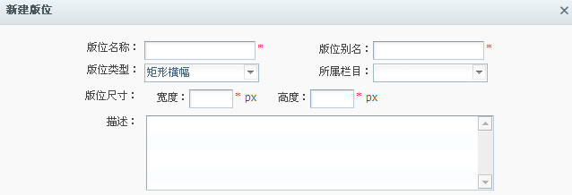 点击列表区的“新建版位”按钮,打来如下对话框: