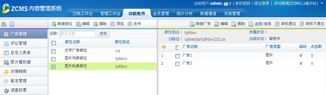 图片轮换和图片列表广告版位:新建的广告都默认处于活动状态,这两个版位允许有多个广告处于活动状态。