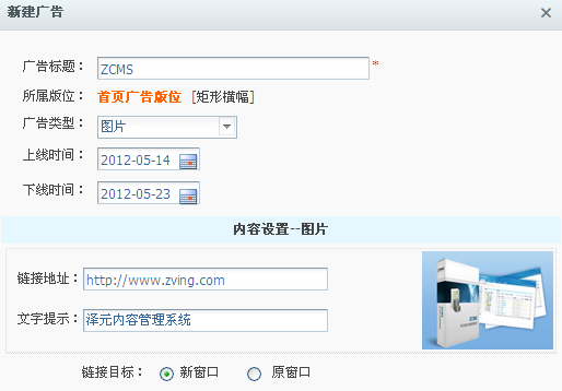 上下线时间:该功能用于实现广告的自动上下线。可以在系统管理中的定时任务功能中配置管理,当对应的任务被启用后,此处的功能才起作用。