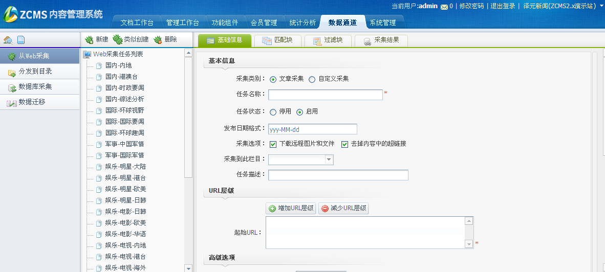 采集可以将别的网站上面有用的新闻,转到自己的网站上。我们可以定义设置一个采集的任务,告知系统目标网站的地址等必要的参数,让系统自动完成采集的工作。