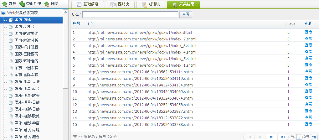 选择某个采集任务,切换到“采集结果”选项卡,可以查看该任务的采集结果,界面如下: