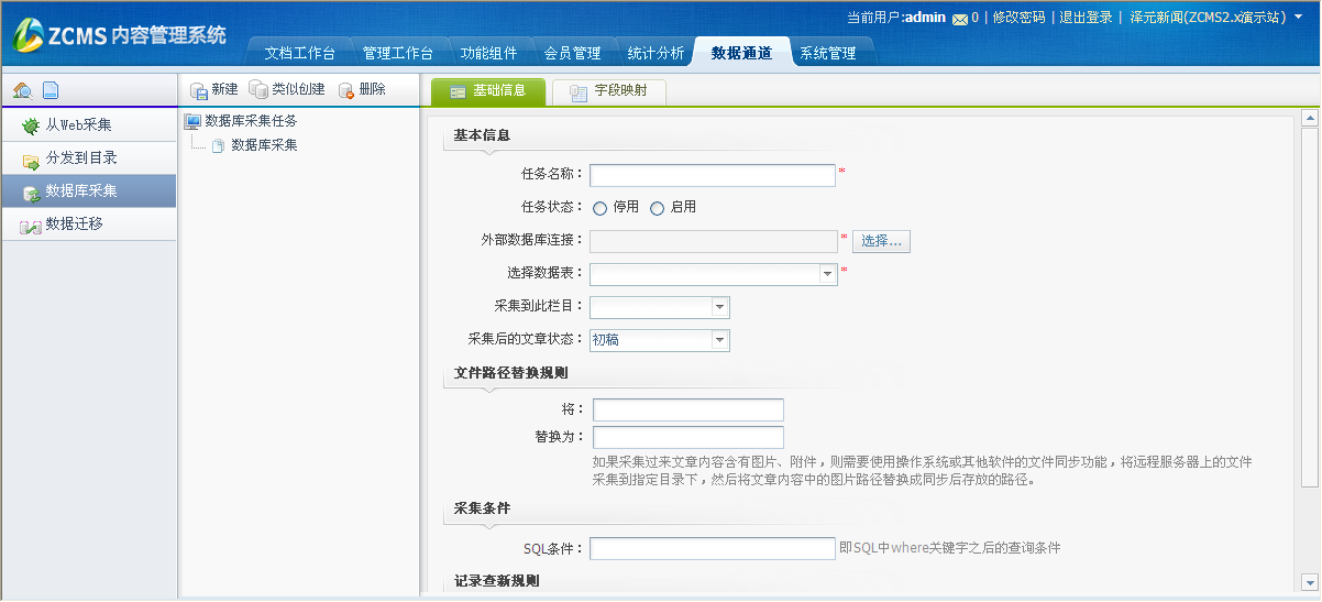 点击“数据库采集”菜单,打开界面如下所示: