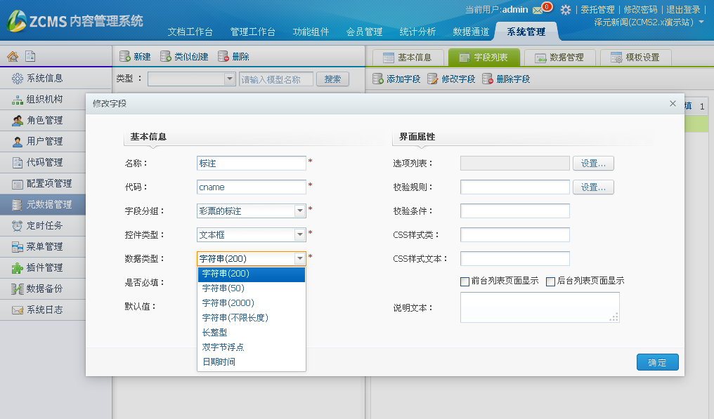 页面参考:metaColumnDialog.zhtml。