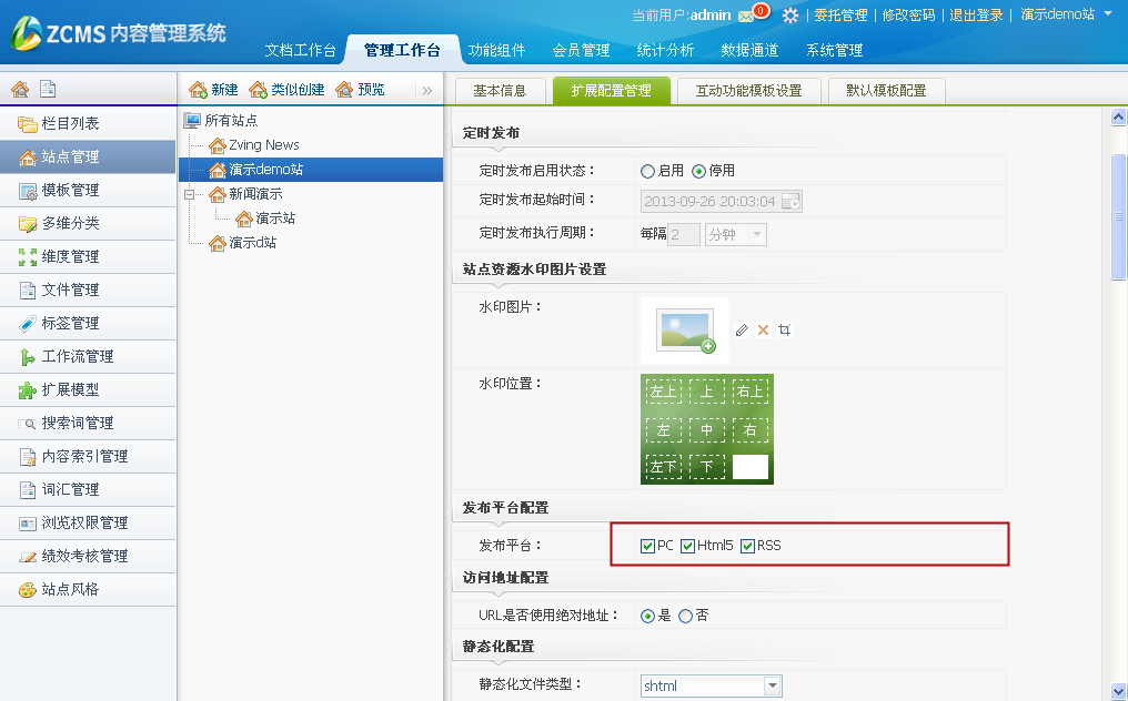 页面参考:contentcore/siteConfigExtend.zhtml。