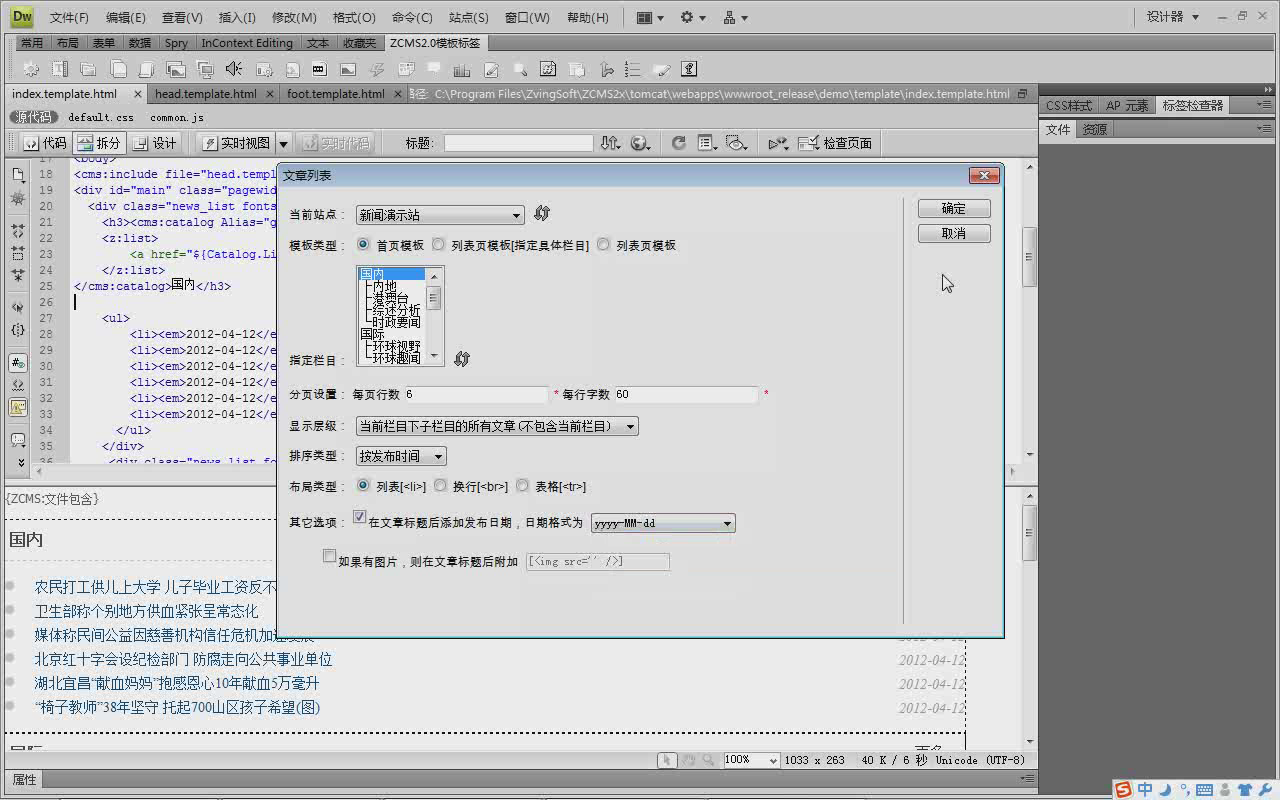 模板制作详细步骤请参考该网址:/shipin/index.shtml中的“新闻站简易模板制作视频”。