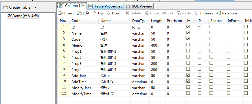 在编辑区的zdm编辑器中配置好相应的表结构,如图所示: