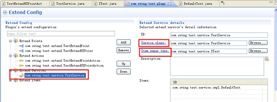 Item super type链接创建扩展服务项接口,Service class链接创建扩展服务类。