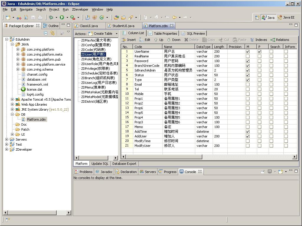 数据库模型编辑器用于编辑.zdm文件,界面如下图所示: