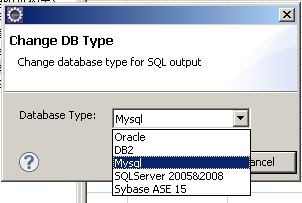 其中“Change Database Type”会让用户选择预览和导出DDL时的数据库类型,此处的选择不会影响数据库连接配置,如下图所示: