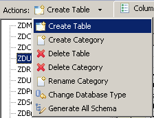 编辑器的右侧有一个下拉按钮和一个数据表树,其中下拉按钮可以执行常用的数据表操作,如下图所示:
