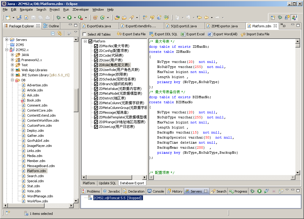 同时,ZDeveloper还提供了导出数据库模型为Excel或Word文件的功能。
