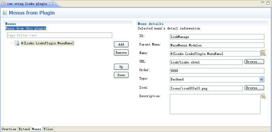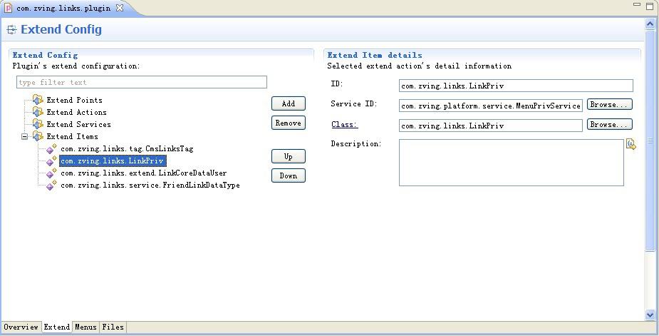 public class LinkPriv extends AbstractMenuPriv { public static final String MenuID = "LinkManage"; public static final String Add = MenuID + ".Add"; public static final String Edit = MenuID + ".Edit"; public static final String Delete = MenuID + ".Delete"; public LinkPriv() { super(MenuID, null); addItem(Add, "@{Common.Add}"); addItem(Edit, "@{Common.Edit}"); addItem(Delete, "@{Common.Delete}"); } } |