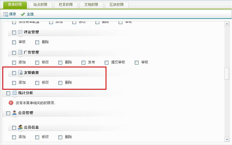 public class LinkPriv extends AbstractMenuPriv { public static final String MenuID = "LinkManage"; public LinkPriv() { super(MenuID, null); } } |