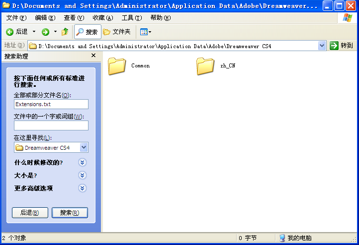 1) 在系统盘的Documents and Settings\Administrator\Application Data\Adobe\Dreamweaver CS4\ 目录下搜索Extensions.txt文件(其中Dreamweaver 、CS4根据各自安装版本会有不同);