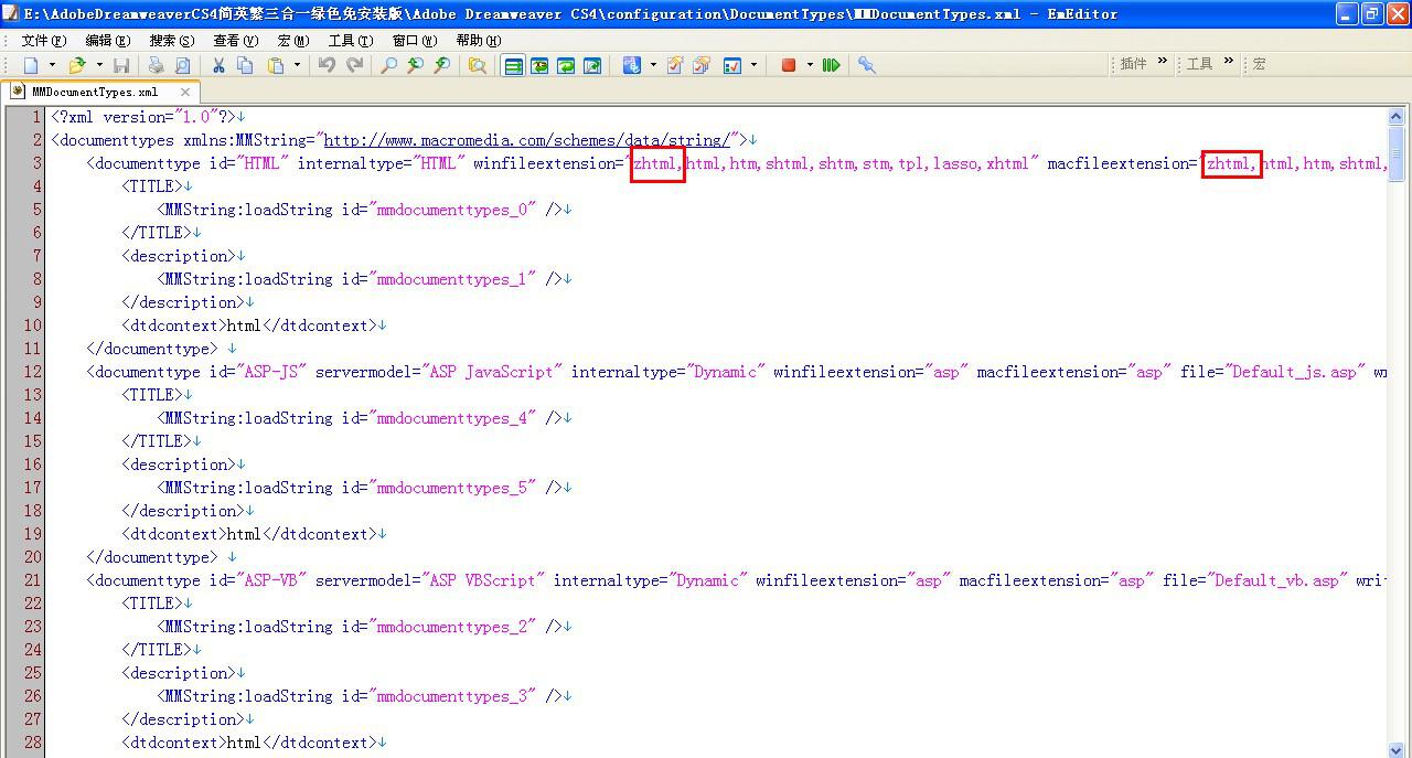 1)找到Dreamweaver安装目录,在目录下搜索MMDocumentTypes.xml;