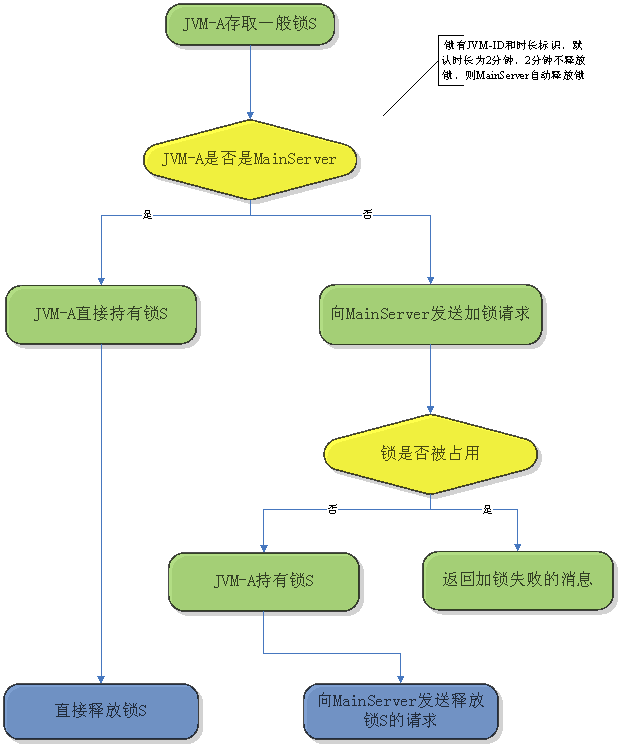 2) 如果服务器A是MainServer,则直接分配锁S给自己,并在操作完成后释放锁S;