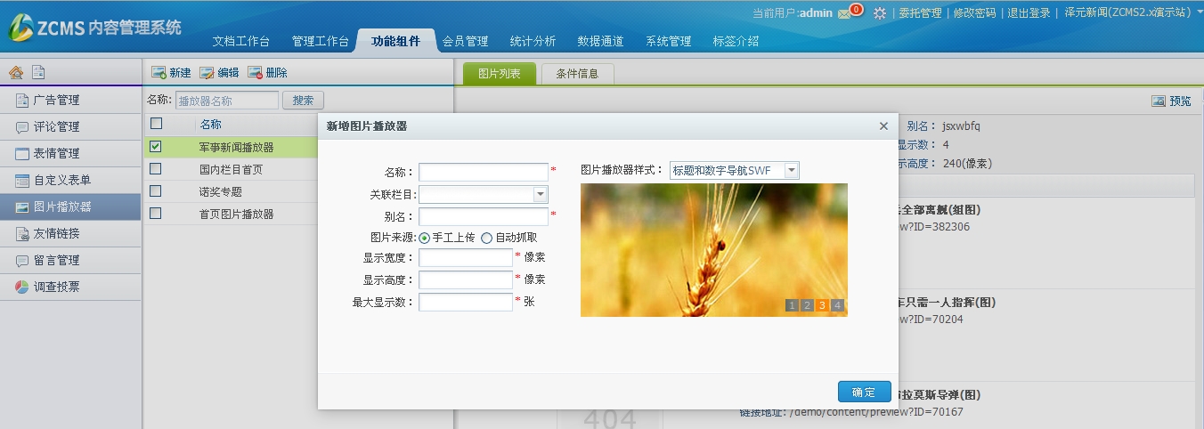 public class TitleAndDigitalPlayerType extends AbstractImagePlayerType { //图片播放器代码 public static final String typeCode = "titleanddigital"; //图片播放器名称 public static final String typeName ="@{Imageplayer.TitleAndDgitalPlayerTypeName}"; //图片播放器模板文件名称 public static final String templateFileName = "template.html"; //图片播放器预览图片名称 public static final String getPreviewimageName = "thumbIMG.jpg"; //图片播放器使用js名称 public static final String jsName = "sChange.js"; @Override public String getTemplateFileName() { return templateFileName; } @Override public String getImageTypeCode() { return typeCode; } @Override public String getImageTypeName() { return typeName; } @Override public String getPreviewImageName() { return getPreviewimageName; } @Override public String getJsName() { return jsName; } public String getID() { return typeCode; } public String getName() { return typeName; } @Override public List<String> getNeedFiles() { List<String> fileList = new ArrayList<String>(); String prefix = ImagePlayerBL.getSourceFilePath(typeCode); fileList.add(prefix + jsName); return fileList; } }