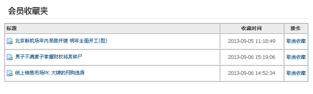 会员收藏夹列表收藏内容的类型 |