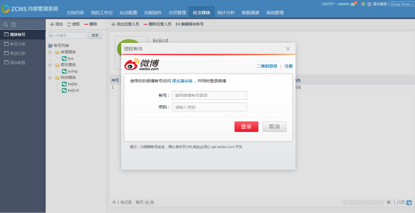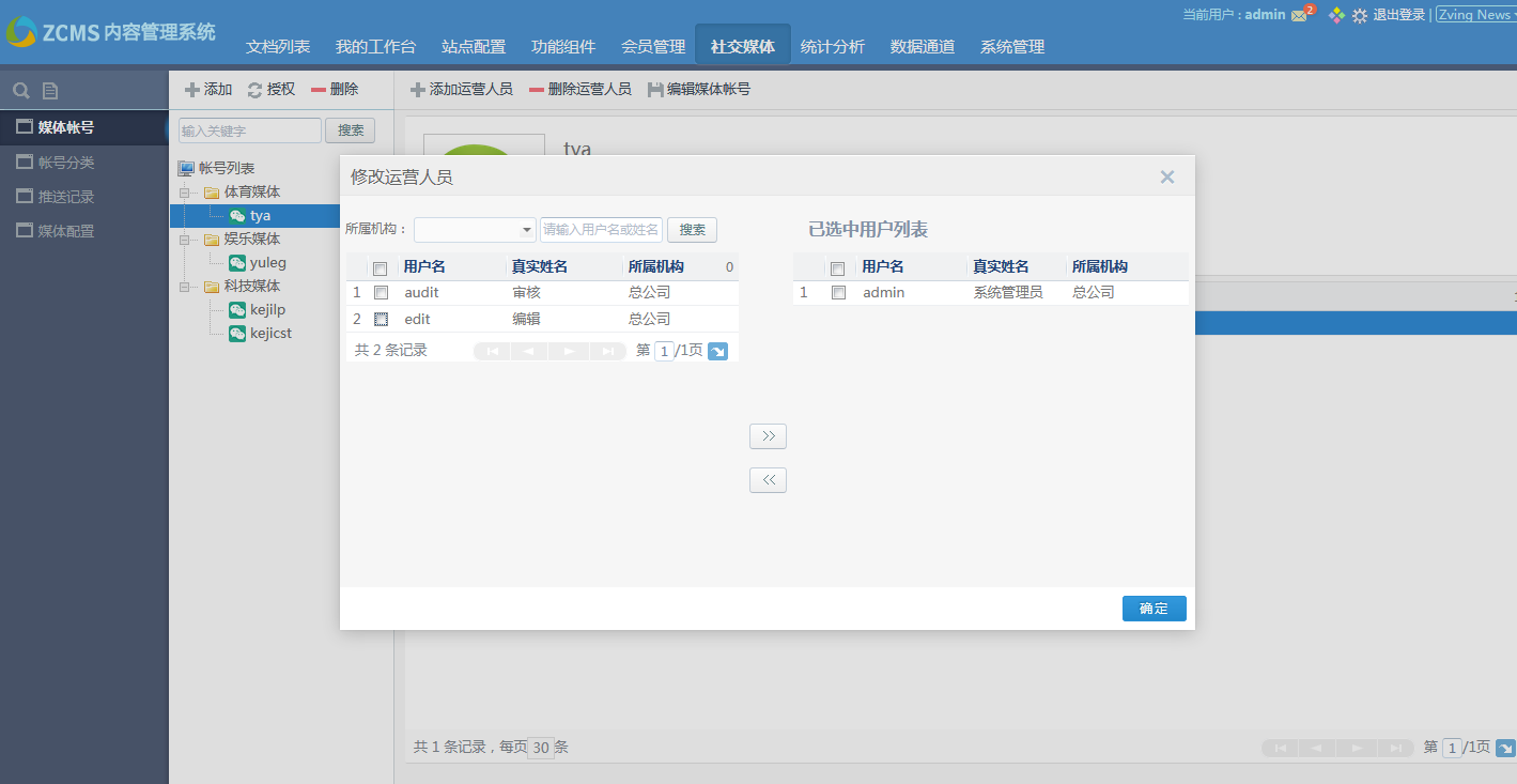 添加修改媒账号体管理员