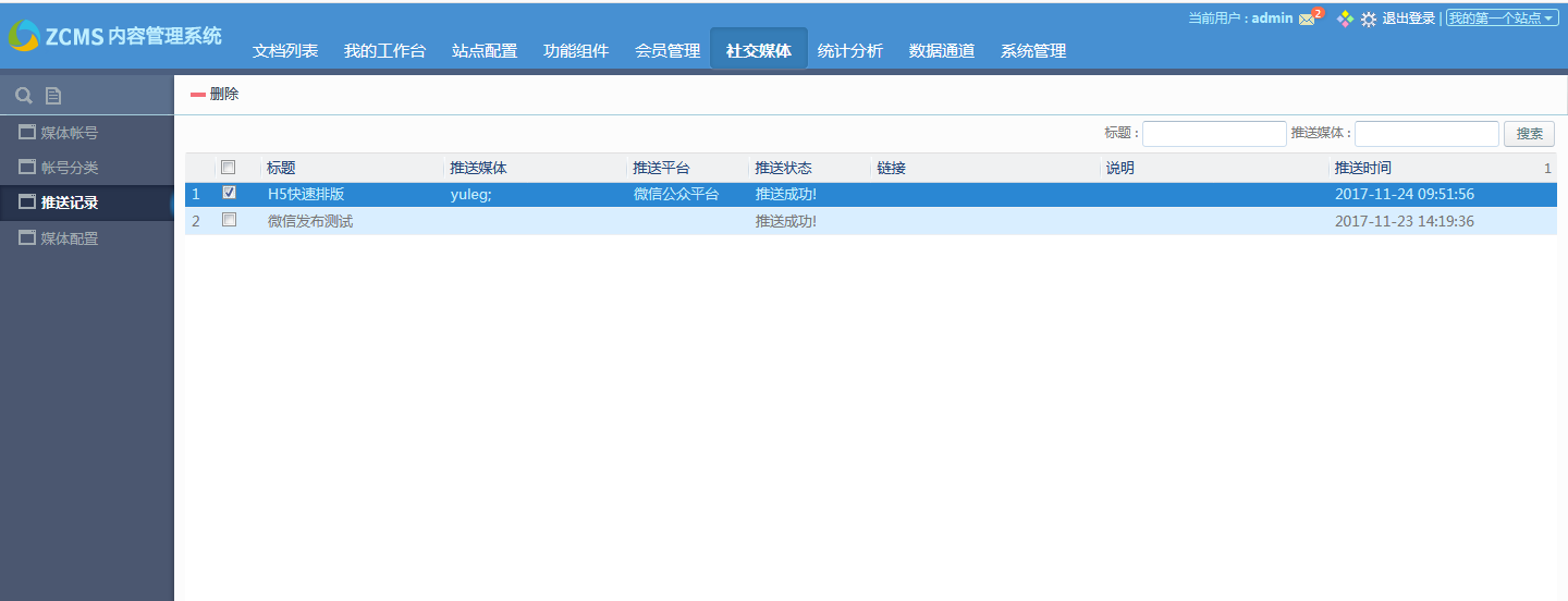 支持查询及删除稿件的推送记录。