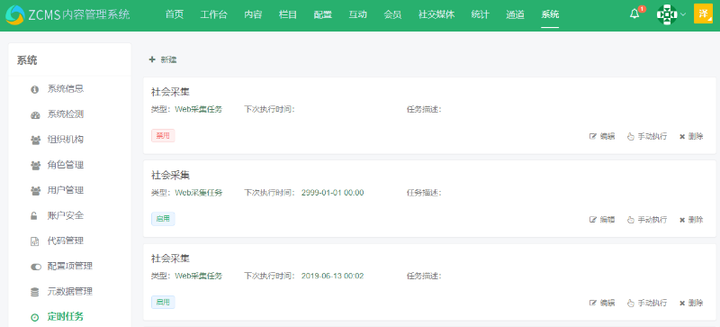 删除任务:在任务列表中勾选一条记录,再点击“删除”按钮,可完成删除操作。其中,系统自带的定时任务不允许被删除。