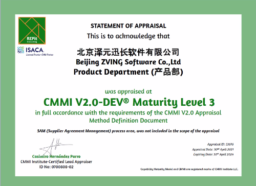 本次通过CMMI3级评估认证,意味着泽元软件可为国内外用户提供更成熟的行业解决方案和更高质量的服务,也为公司产品的持续创新和升级奠定坚实的技术基础。