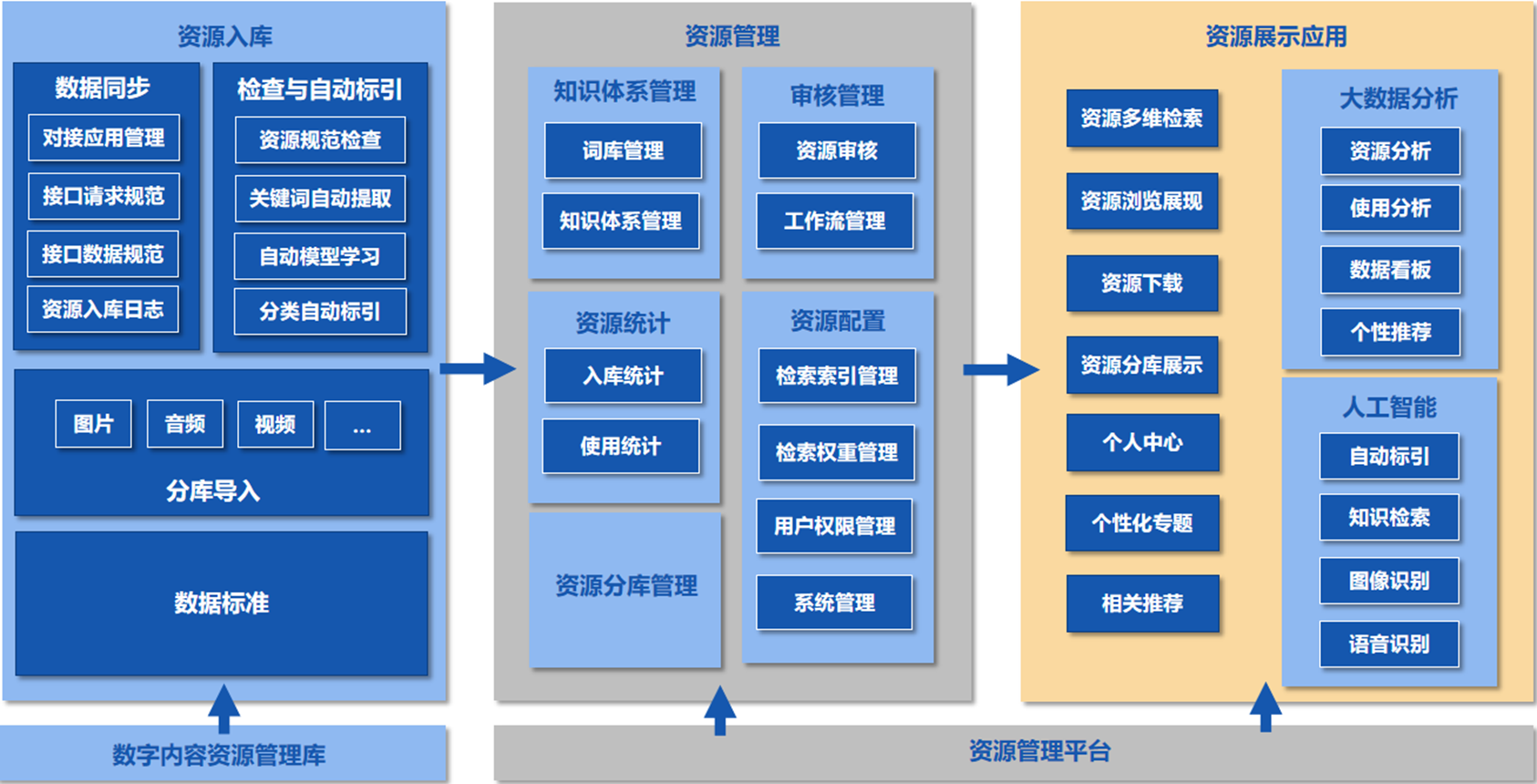 随着教育信息化建设的不断深入,信息技术设施和网络环境设施逐渐完善,对数字教育资源的需求日益强烈。数字资源主要是指利用一些生动形象的声音、图像、文字等形式丰富多样的电子数据,将其保存于非纸载体中,并在此基础上,利用现代计算机信息、多媒体及通信等技术,对这些电子数据进行发布、存取和使用。泽元资源库管理系统是以内容资源数字化存储为核心,以内容资源共享为目的,面向海量内容资源处理,集分布式存储、内容管理、知识服务、个性化推荐为一体的资源管理平台,致力于帮助用户建立起大数据资源的共享体系。